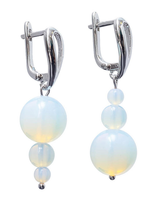Silver Opalite Drop Earrings – Asymmetrical Dangle Statement Earrings | Mismatched Crystal Gift for Her | Funky Blue Moonstone Style