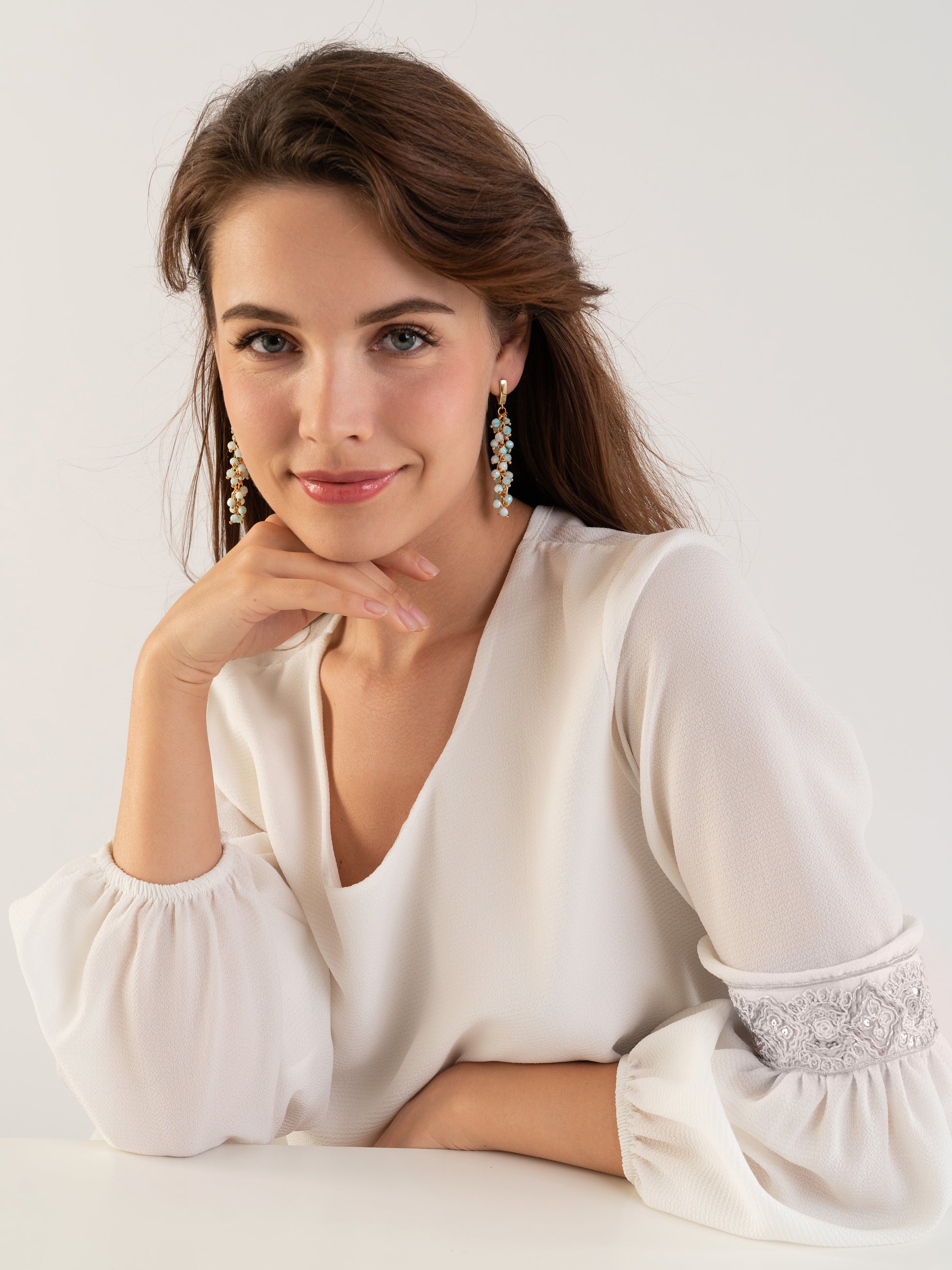 Questi orecchini turchese sono accattivanti e confortevoli da indossare, rendendoli una scelta ideale per l'uso quotidiano o per occasioni speciali come compleanni e Capodanno. Se state cercando un regalo unico per la vostra amata o amica in occasione di un matrimonio o l'8 marzo, gli orecchini in quarzo dal delicato colore turchese sono una splendida opzione. Questi orecchini artigianali unici sono un regalo di stile per festività come San Valentino o Natale.