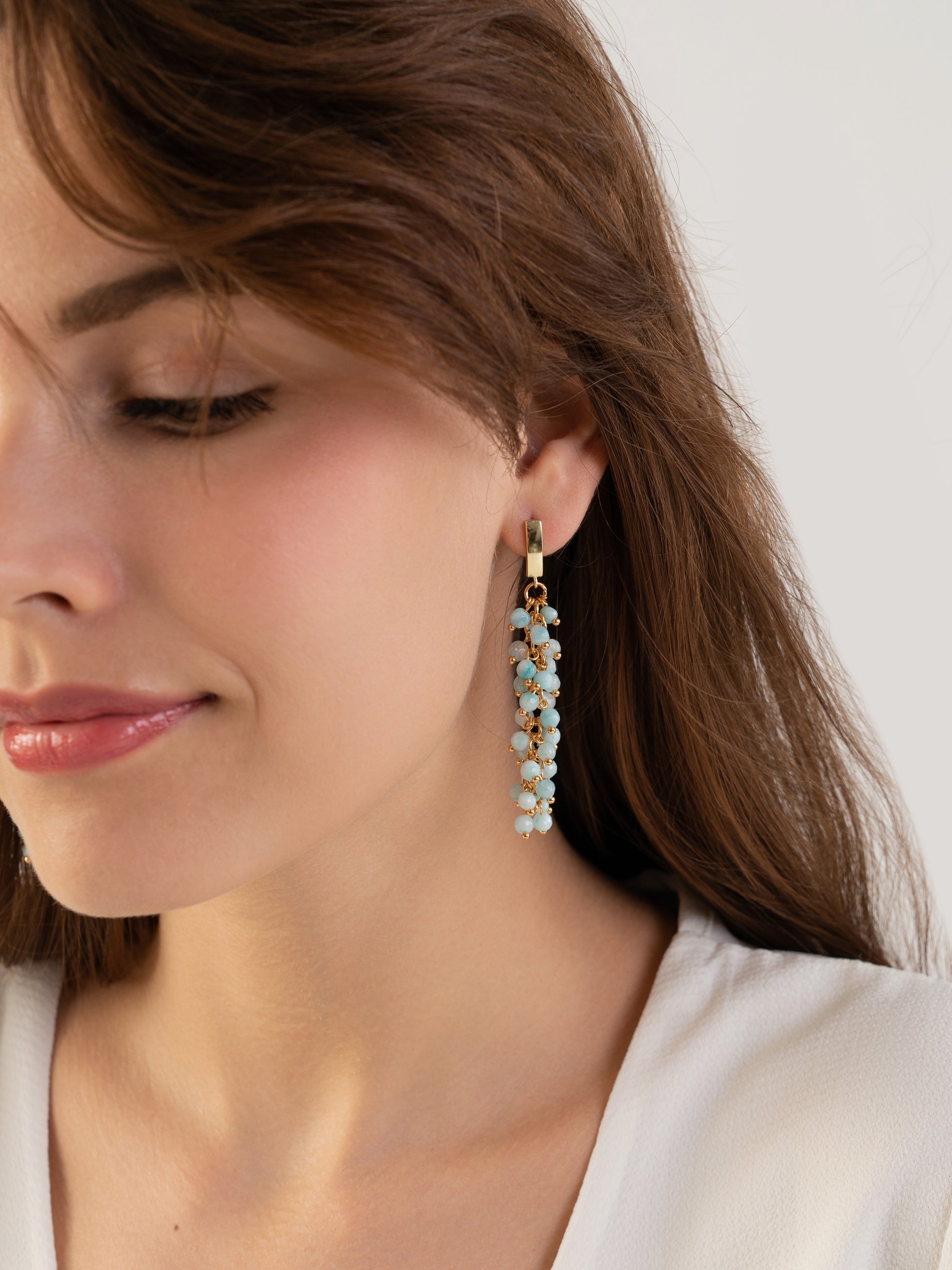 Per coloro che cercano gioielli unici e di stile, vi presentiamo i nostri orecchini pendenti realizzati con pietre di quarzo tinto su catene. Il quarzo è una pietra dotata di eleganza e bellezza.