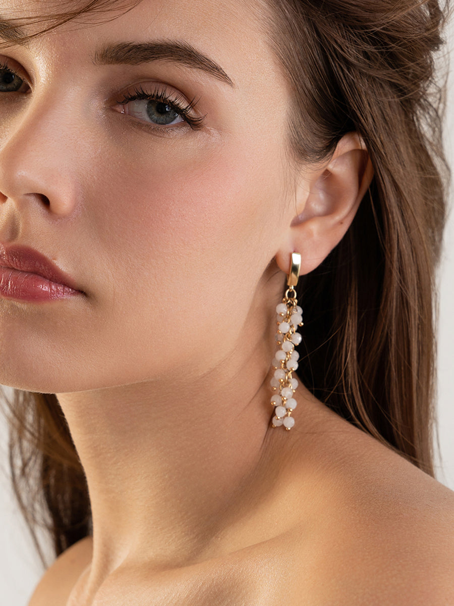 Questi eleganti orecchini pendenti in quarzo su catene saranno un regalo meraviglioso per ogni donna che apprezzi l'unicità e la bellezza. Sono accattivanti e si abbineranno magnificamente a qualsiasi outfit.